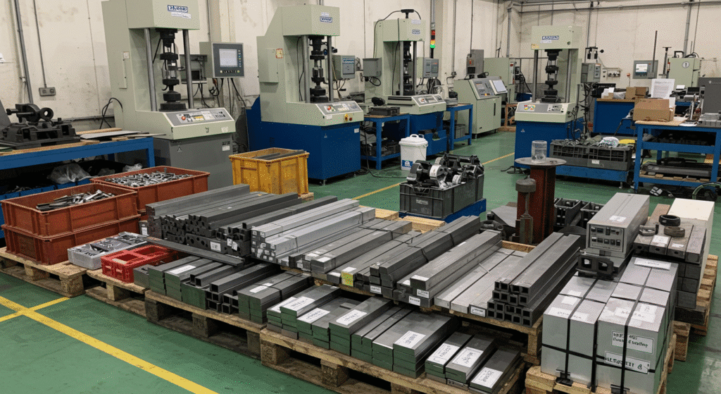 Յուրաքանչյուր բեռից ներկայացուցչական նմուշները վերլուծվում են XRF սպեկտրոսկոպիայի միջոցով՝ տարրական կազմի համար և ստուգվում մեխանիկական հատկությունների (կարծրություն, ձգման ամրություն) համար՝ օգտագործելով հավատարմագրված լաբորատոր սարքավորումներ, արդյունքները համեմատվում են մատակարարի սպեցիֆիկացիաների և ներքին որակի չափանիշների հետ, որին հաջորդում են հանդուրժողականությունից դուրս արդյունքների գնահատման արձանագրությունները։