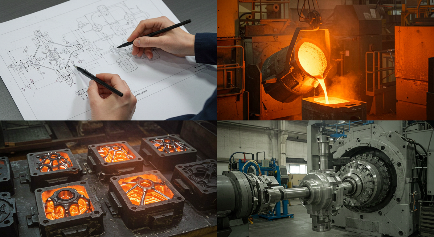 • The process begins with casting design, tailored to the product’s functional and structural requirements.