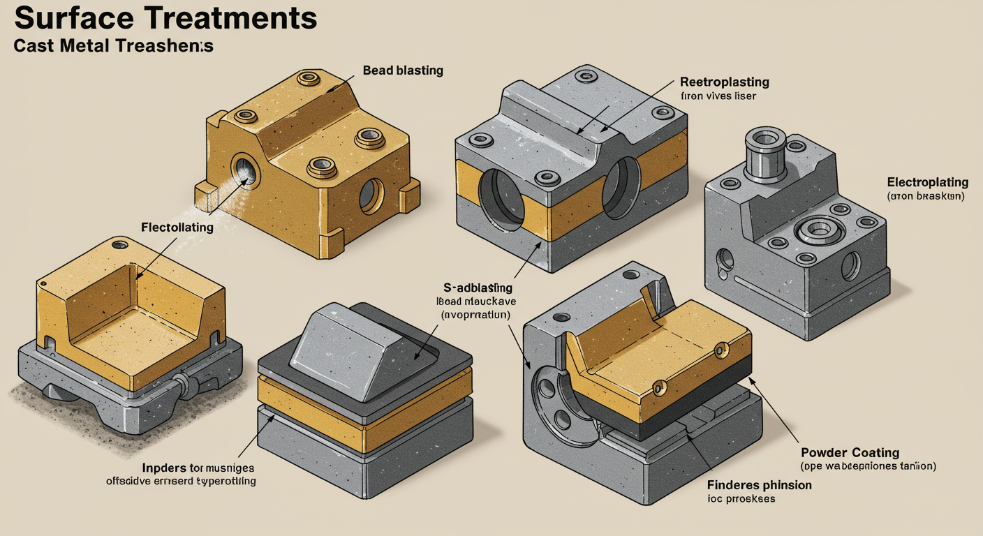 Surface finish varies by process, ranging from a rough texture (e.g., sand casting at Ra 12.5 μm) to a smooth finish (e.g., precision casting at Ra 3.2 μm). Treatments like sandblasting, electroplating, or painting can enhance both appearance and corrosion resistance.